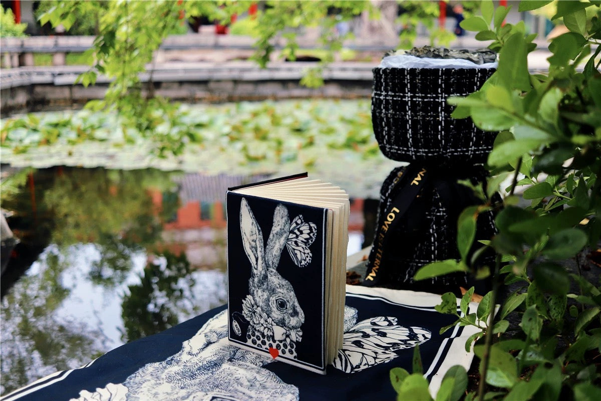 Special matte gradient fabric cover with a soft brushed texture, transitioning beautifully from deep blue to violet—just like the gentle hues of bellflowers (Campanula).